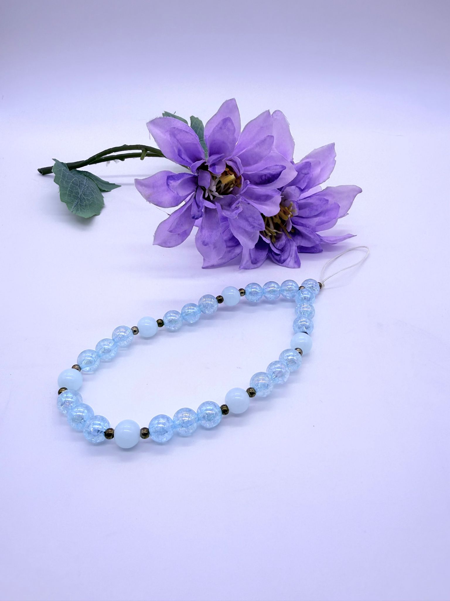 Lichtblauwe kralen met een glinsterend effect – fris, luchtig en elegant.