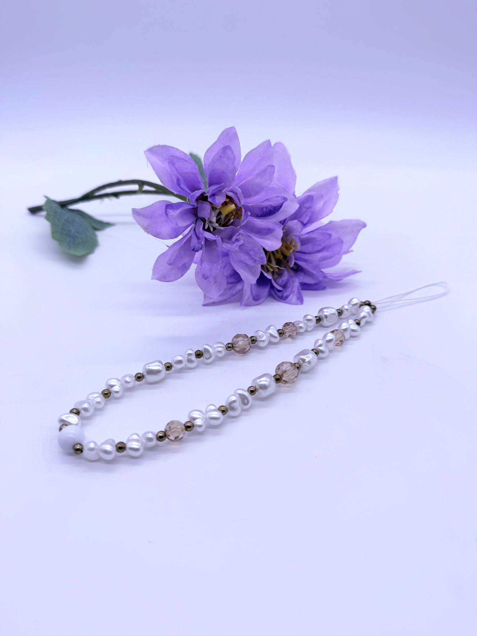 Witte parels met transparante gouden kralen – een chique en veelzijdige combinatie.