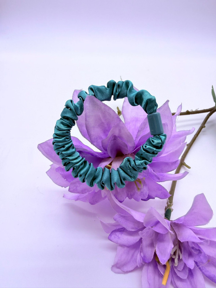 De Diep Oceaanblauw scrunchie straalt kalmte en diepte uit met haar diepe blauwgroene tint. Gemaakt van een zachte, haarvriendelijke stof die je haar beschermt en comfortabel op zijn plek houdt. Perfect voor een stijlvolle, ingetogen look, zowel casual als chique.