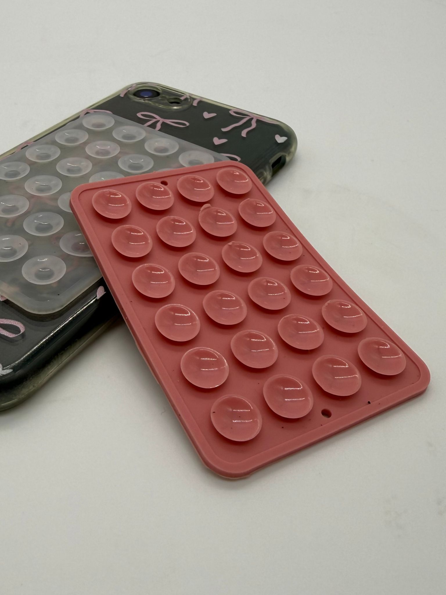 Koraalkleurige Octobuddy – Stevige, herbruikbare grip voor je smartphone. Opvallend en ideaal voor handsfree gebruik.