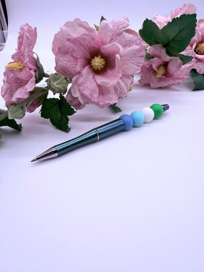 Een stijlvolle pen met een betoverende blauwe glitter, perfect voor een elegante en sprankelende uitstraling.