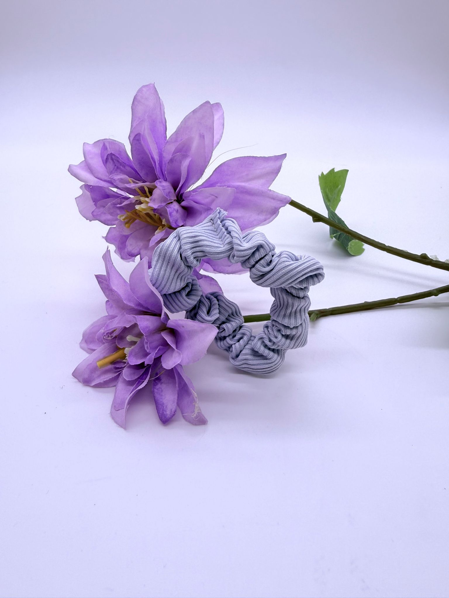 De Zilveren Mist scrunchie straalt subtiele elegantie uit met haar lichtgrijze kleur en fijne textuur. Gemaakt van een comfortabele ribstof die zacht is voor het haar en zorgt voor een stevige, maar soepele grip. Deze scrunchie past moeiteloos bij elke outfit — van casual tot classy — en geeft je look een rustige, verfijnde touch. Ook mooi om als accessoire rond je pols te dragen.